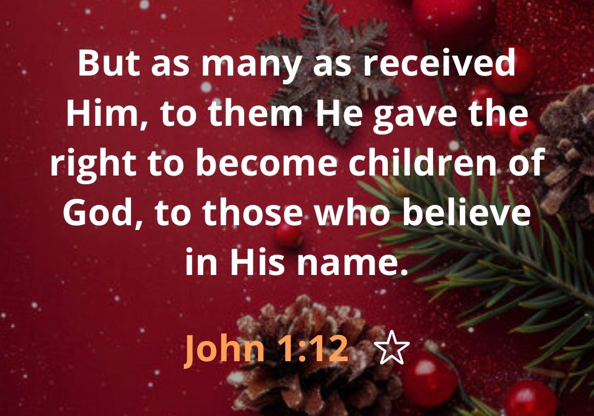 “But as many as received Him, to them He gave the right to become children of God, to those who believe in His name.” - John 1:12