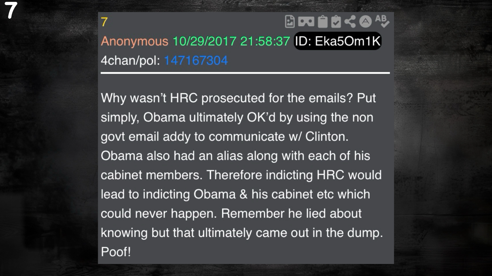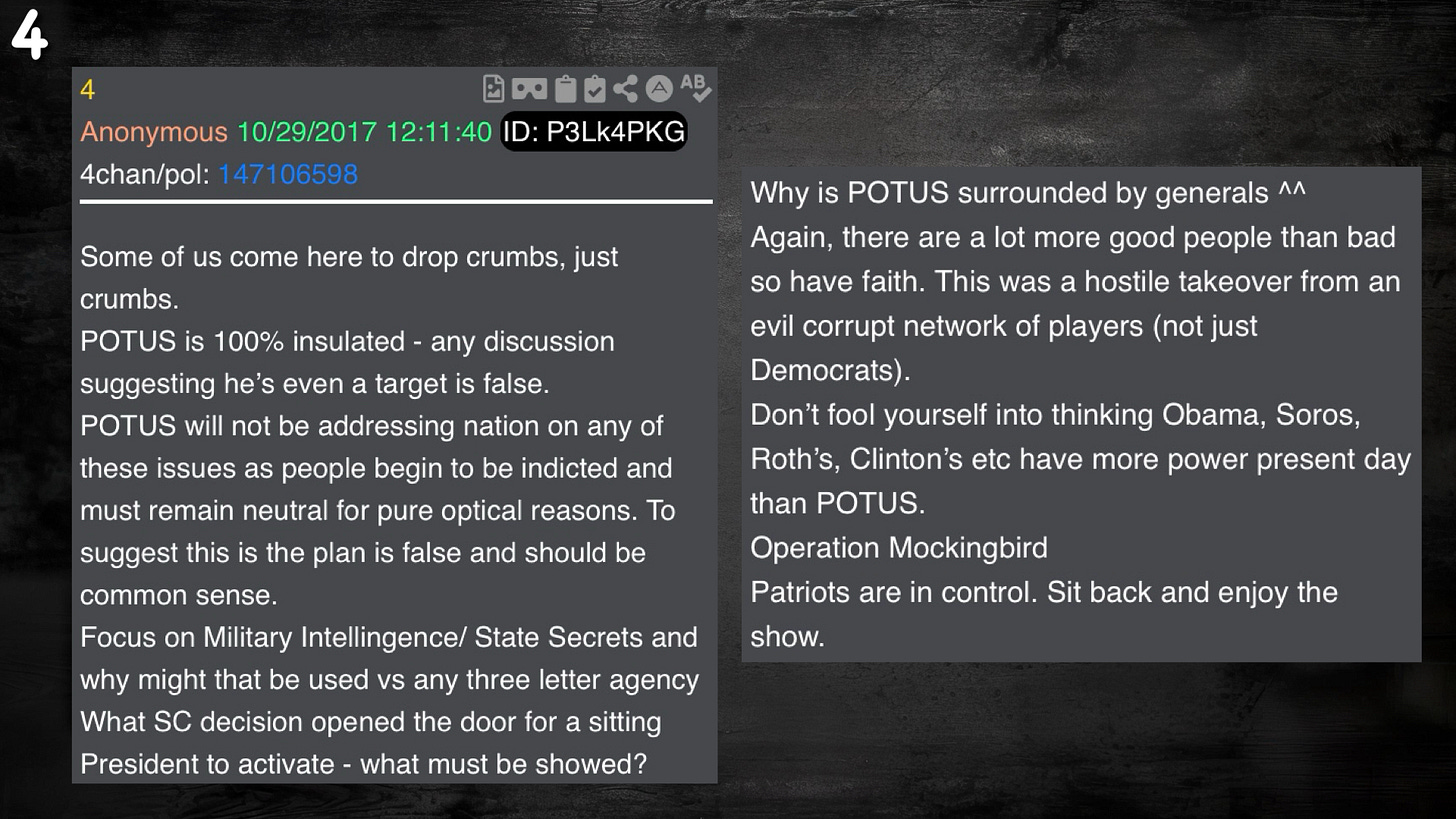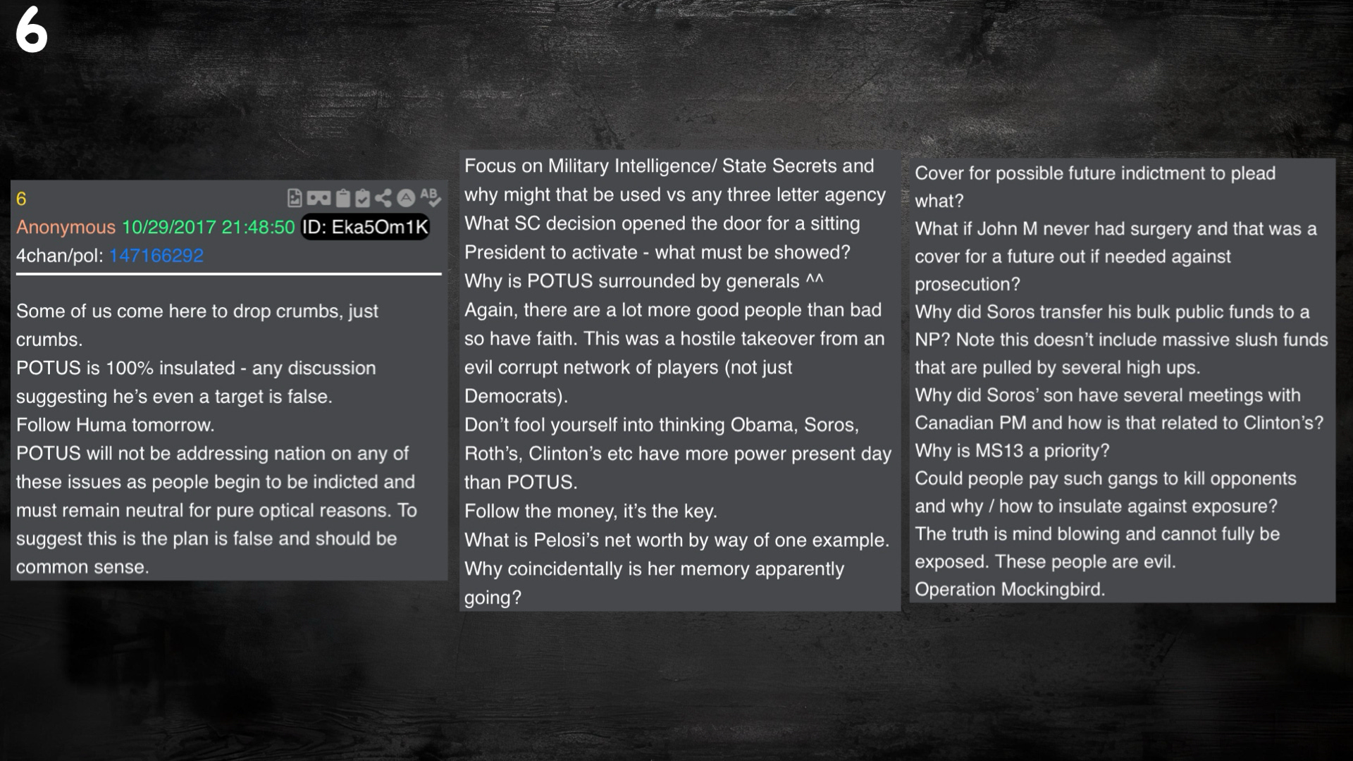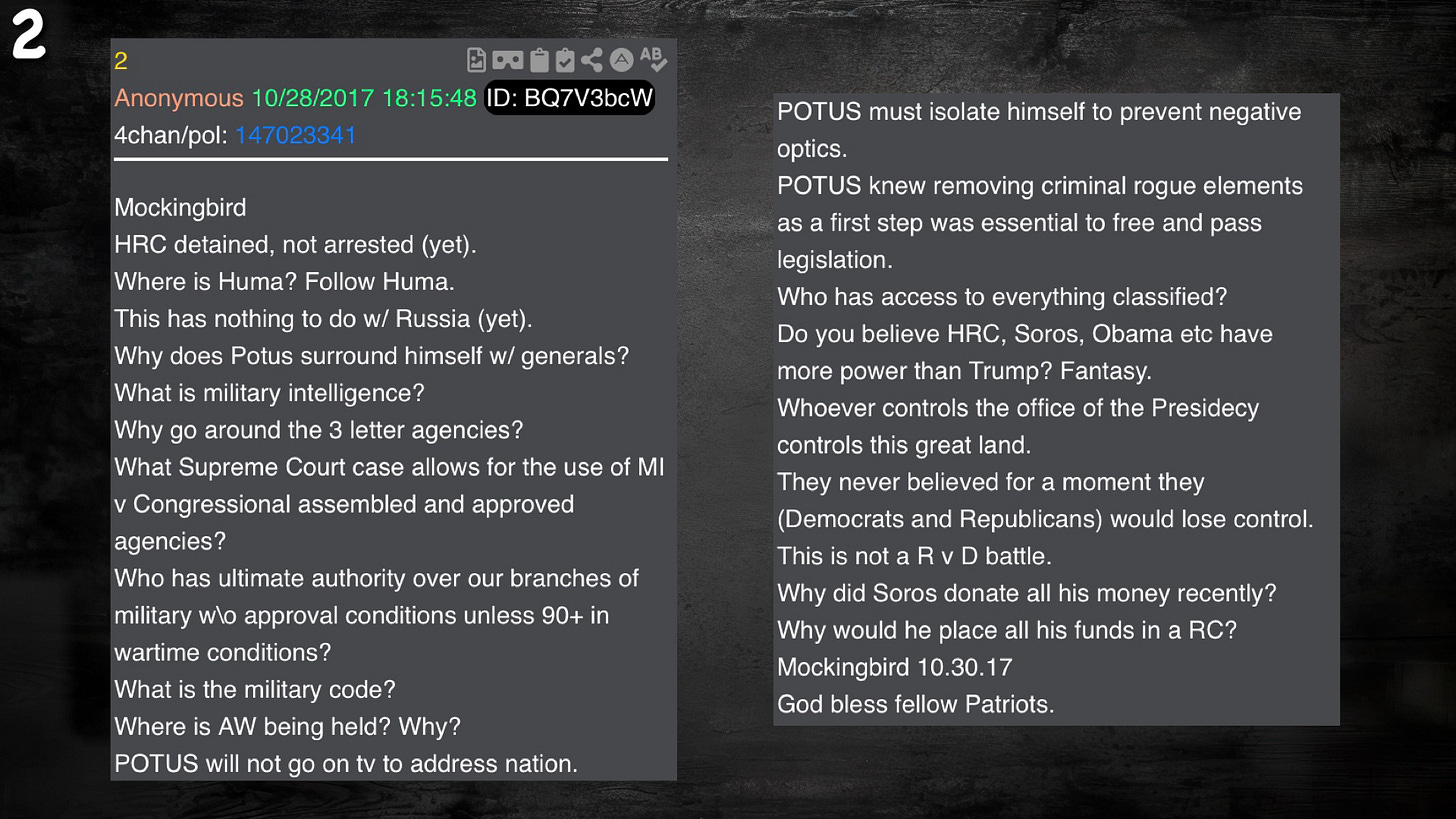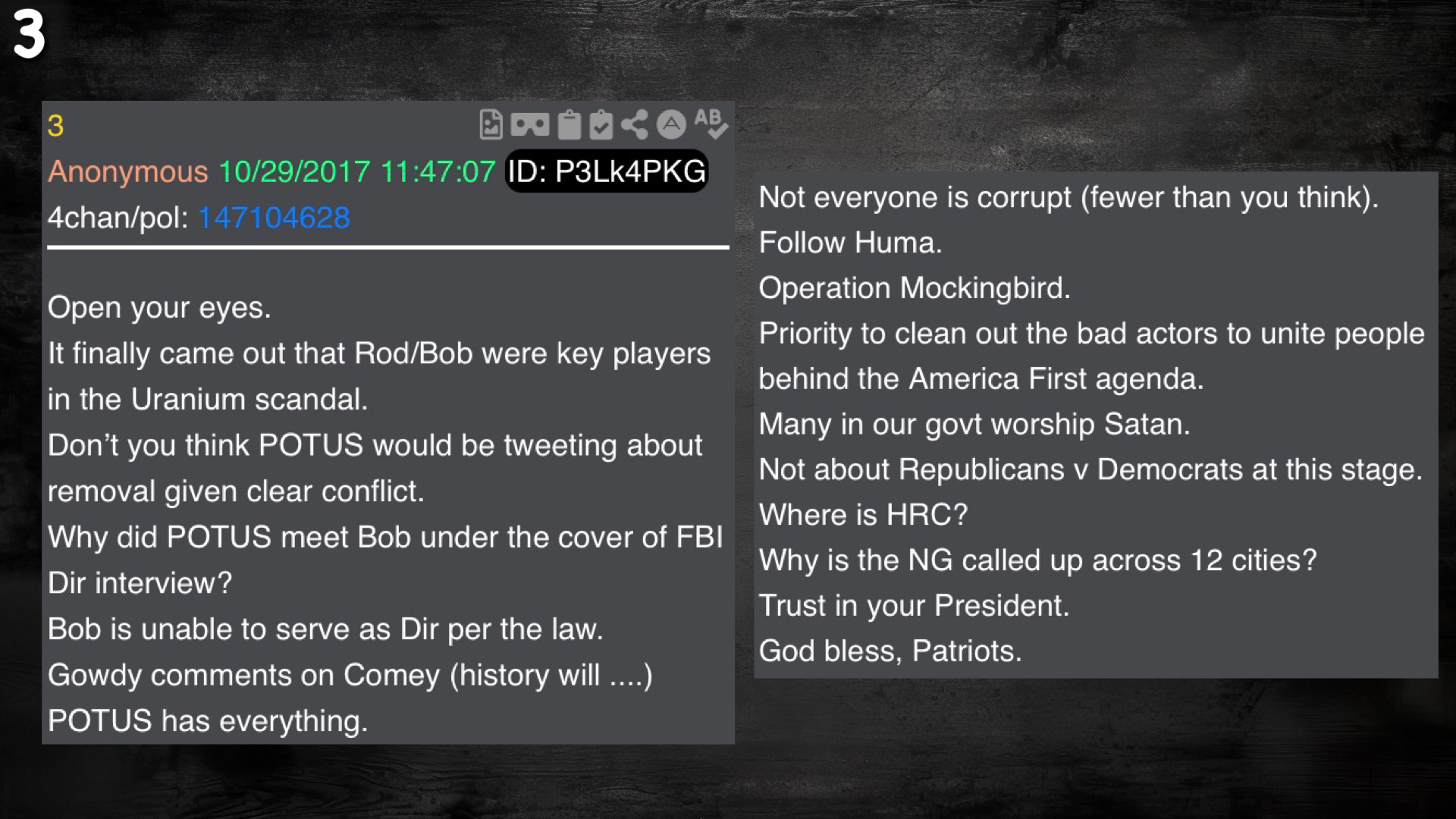 That being said, Anons had shown their value and skill for research when Pizzagate appeared on 4chan in October of 2016 - quickly collecting and archiving information.