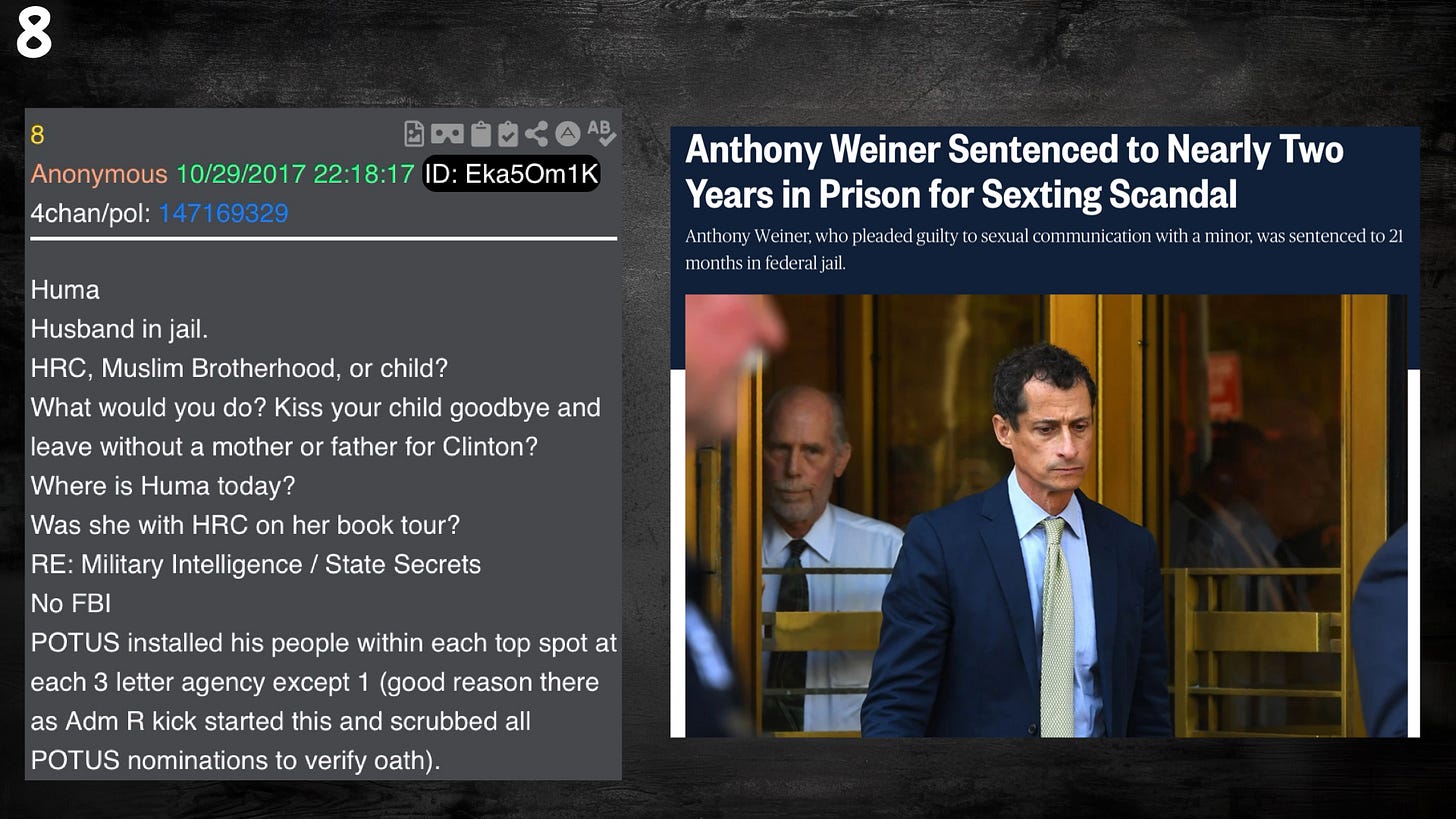 This Drop leads off with references to Huma Abedin and Anthony Weiner, as well as the Muslim Brotherhood. I won’t spend any time on the MB in this chapter, but rest assured - the organization comes up plenty in the next couple chapters.