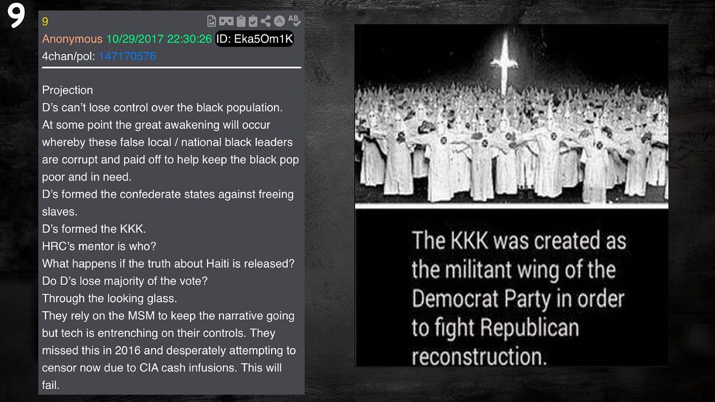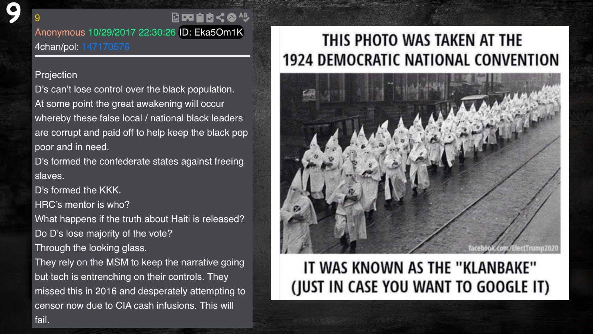Q is really hammering home the hypocrisy of the Democrats here. Pointing out that the Democrats actually created the KKK.