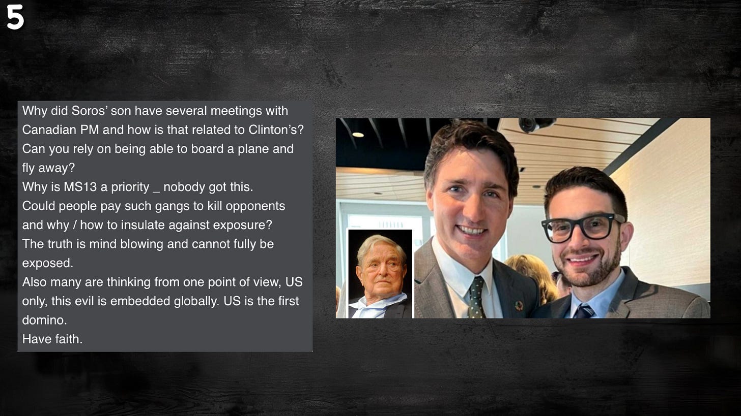Q then asks us why Alex Soros met with the Canadian PM. While I couldn’t find any proof of him meeting with the Canadian PM in 2017, I found it interesting that Alex Soros did indeed meet with PM Trudeau in 2023: Alex Soros Meets With Trudeau In 2023