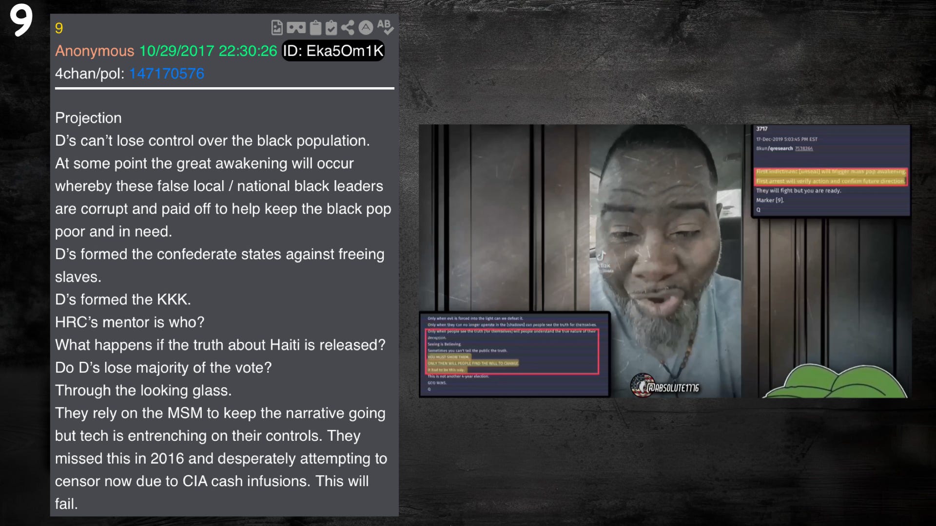 Drop 8 begins with Q telling us that the Democrats cannot afford to lose the black vote. Let’s go ahead and take a look at a video which showcases what happens when the black population begins to wake up to the BS foisted upon them by the Democrats for decades. I put this video together after President Trump was booked and had his mugshot taken. (Warning: There is a lot of VERY strong language in this video.)