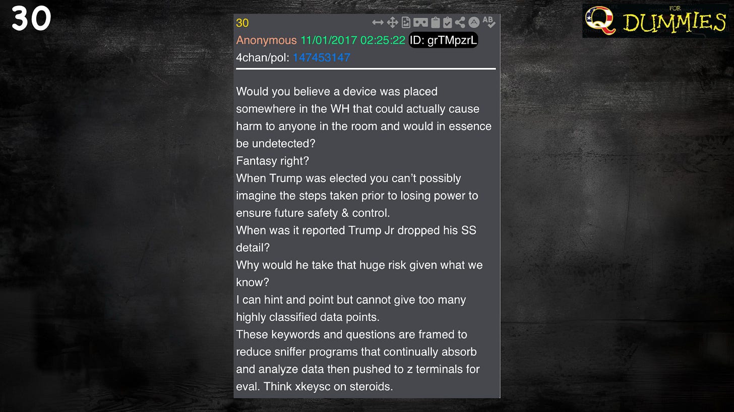 Q then tells us that certain keywords and phrases are framed, or pre-screened if you will. This is done in an effort to get around “sniffer programs”, or computer programs the deep state uses to log and track messages worldwide. Q tells us that the program which [they] use is essentially “xkeysc on steroids”.