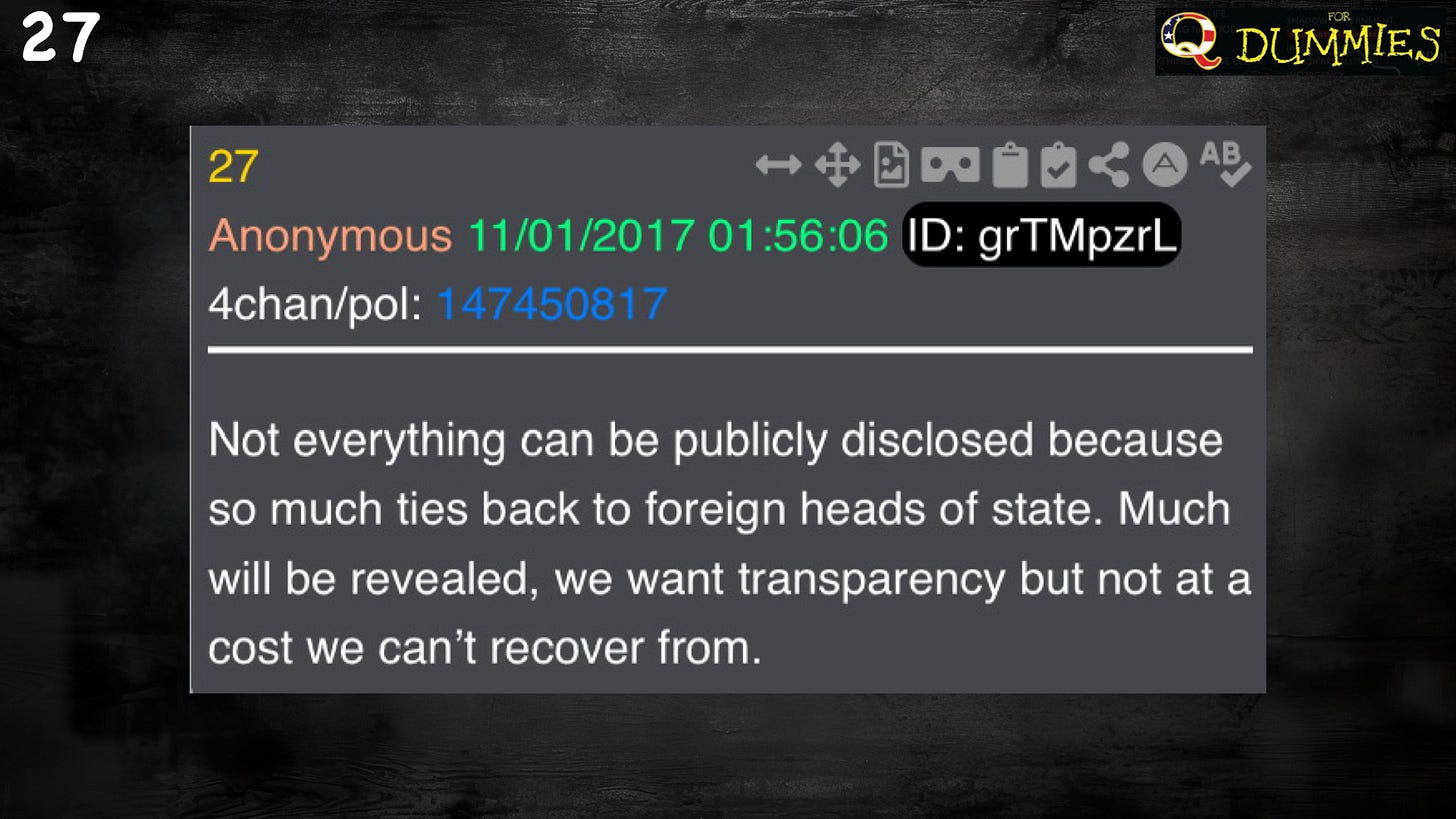 Here we can see Q flat out telling us that not everything can be revealed. I realize this is much to the chagrin of many, and while I understand why that upsets people - I also hold the belief that more people need to read The Art Of War and 5GW in order to understand why it has to be that way.