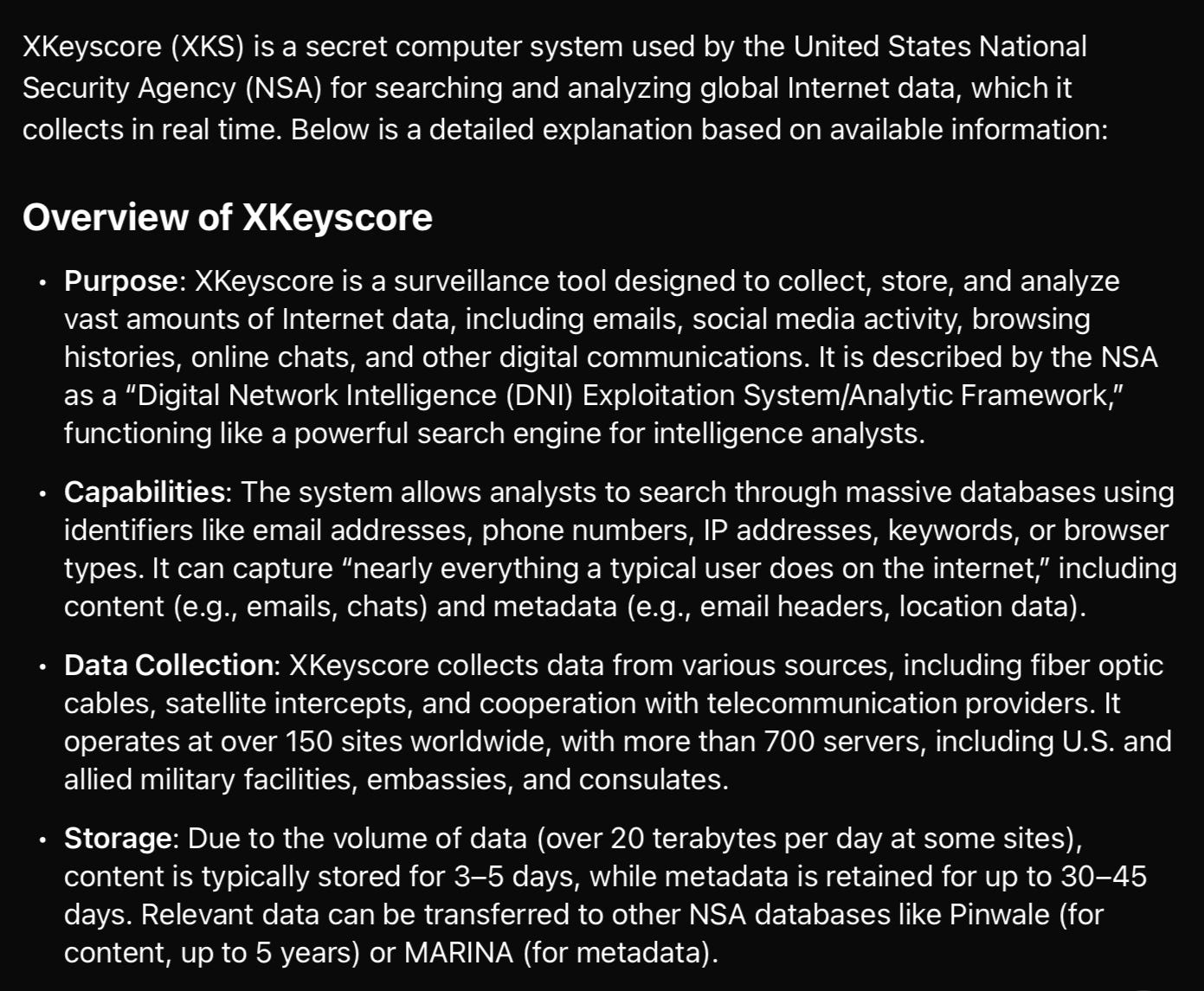 In short, XKEYSC is a program that allowed the deep state to literally find any data they wanted on any individual at any time.