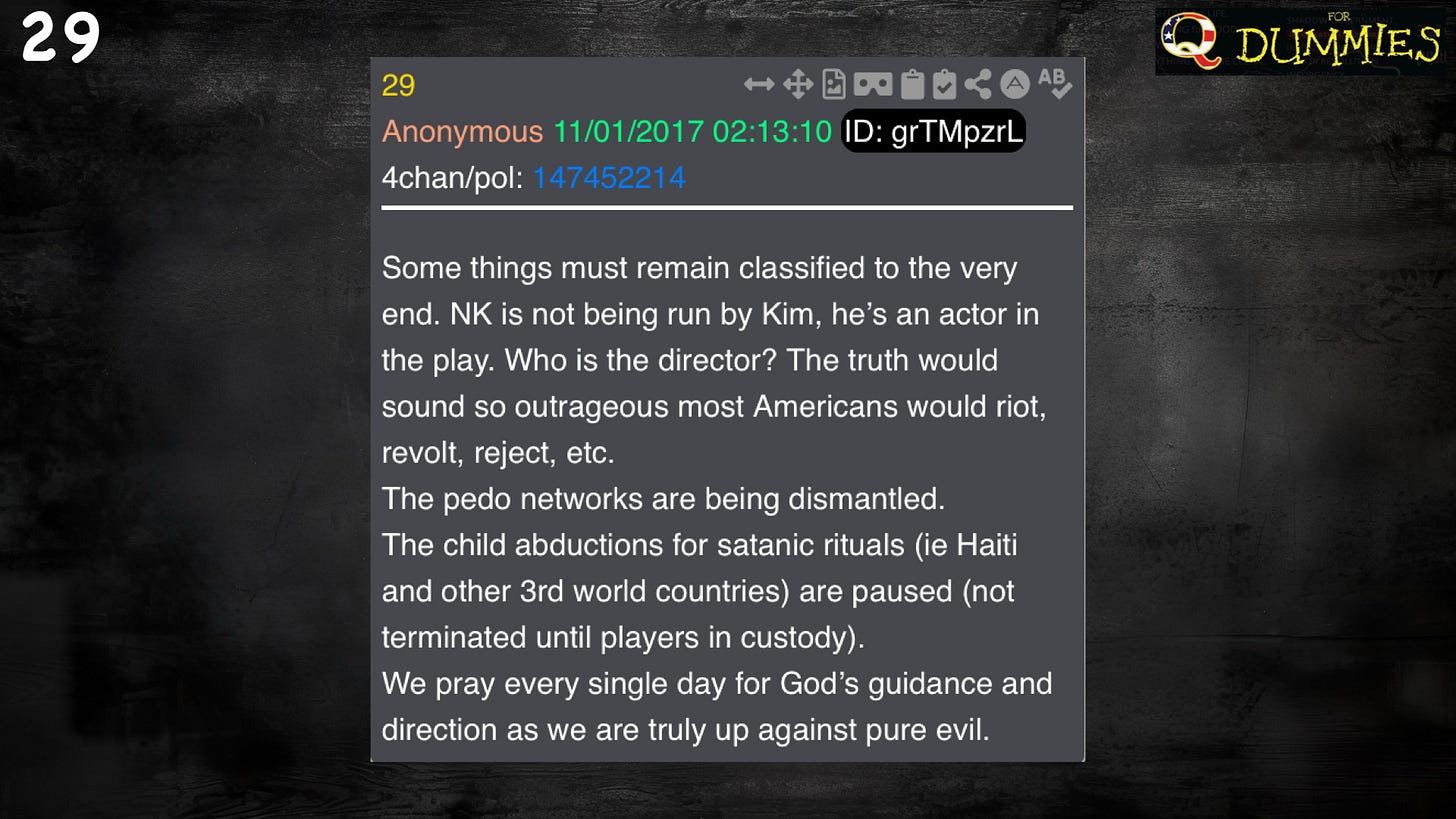 Q ends this drop by mentioning the fact that the team prays every day for God’s guidance in fighting this evil. It isn’t lost on me that Q invoked God while discussing the darkest and ugliest topic in this movement: Child trafficking.