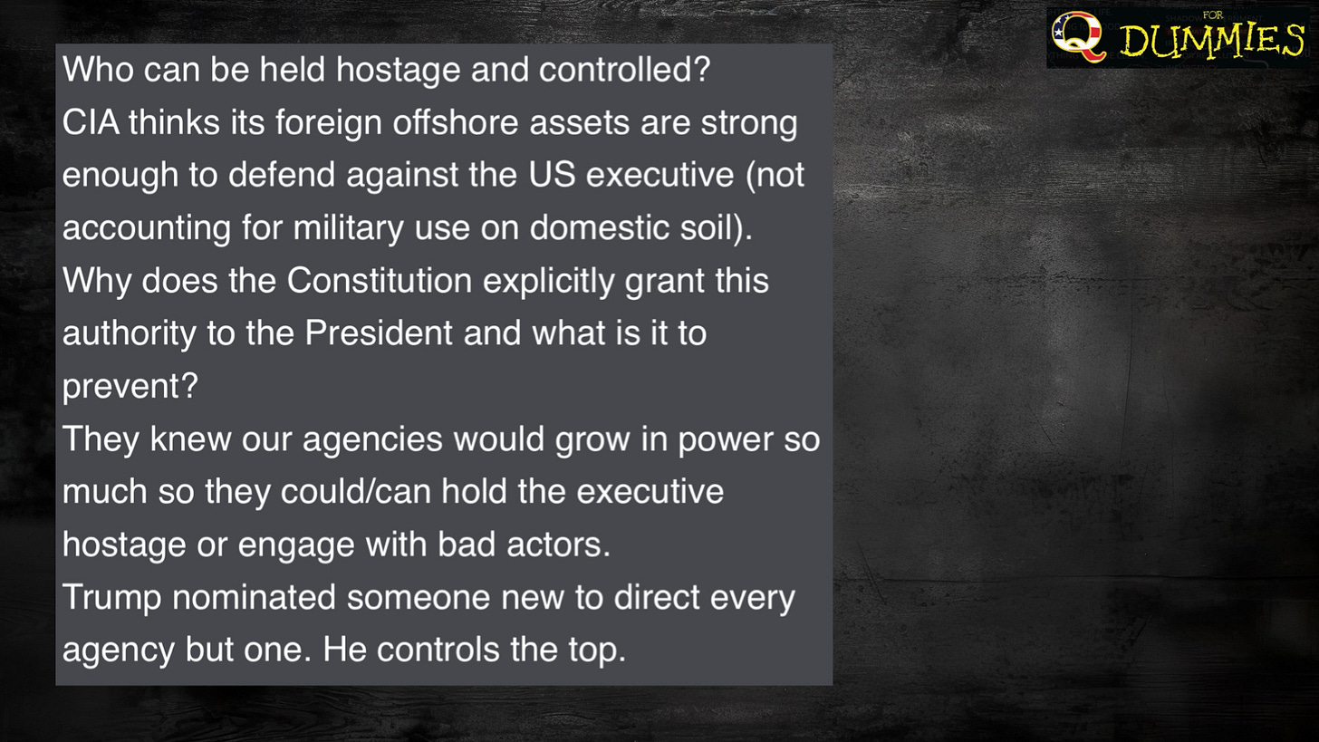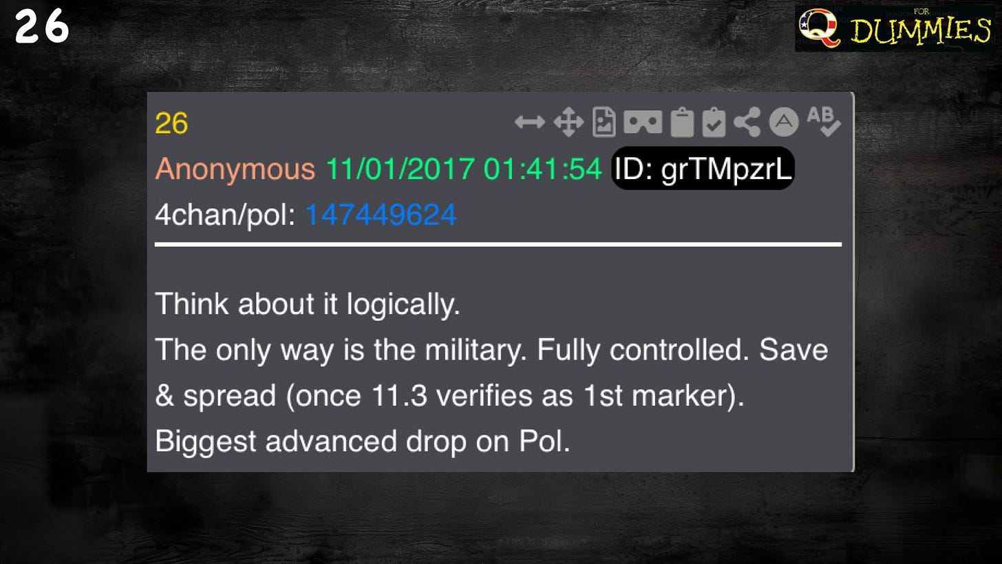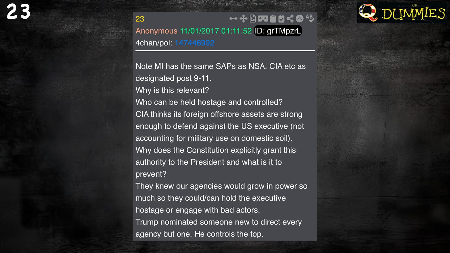 Hello and welcome to Chapter 4 of Q For Dummies: Redux. In this chapter we will be covering drops 23-30, which will build upon the importance of military intelligence, and will also go to highlight a little bit more of the control being exerted.